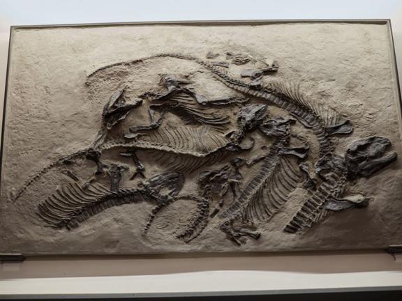 Haptodus baylei Gaudry (syn. Pantelosaurus saxonicus V. Huene), Gruppe von 6 Reptilien, Abguss, Unteres Rotliegend (300 –275 Mill. Jahre), ehemaliger Königin-Carola-Schacht bei Freital, Sachsen. Halle, Martin-Luther-Universität Halle-Wittenberg, Institut für Geowissenschaften und Geographie
